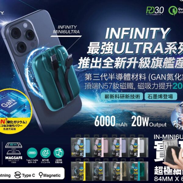 磁吸行動電源 INFINITY Mini6Ultra GAN-6000Ah 20W